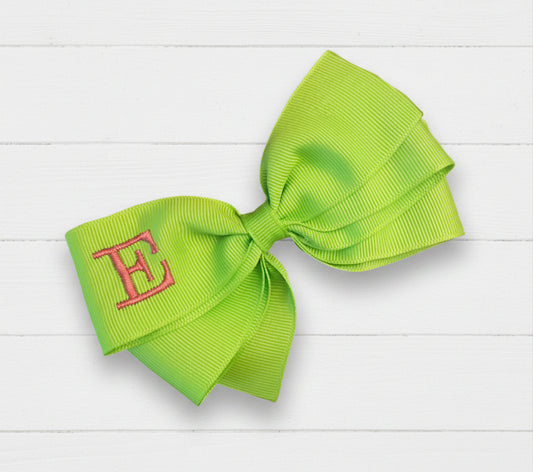 Apple Green Monogrammed Hair Bow w/Pink Initial, Personalized
