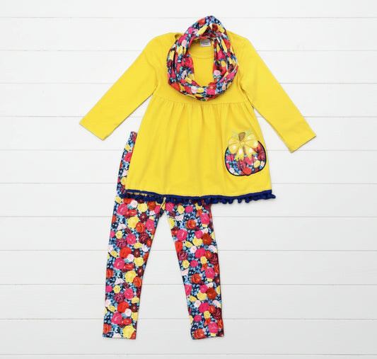 3 Piece Floral & Pumpkin Outfit, girls, leggings / SALE