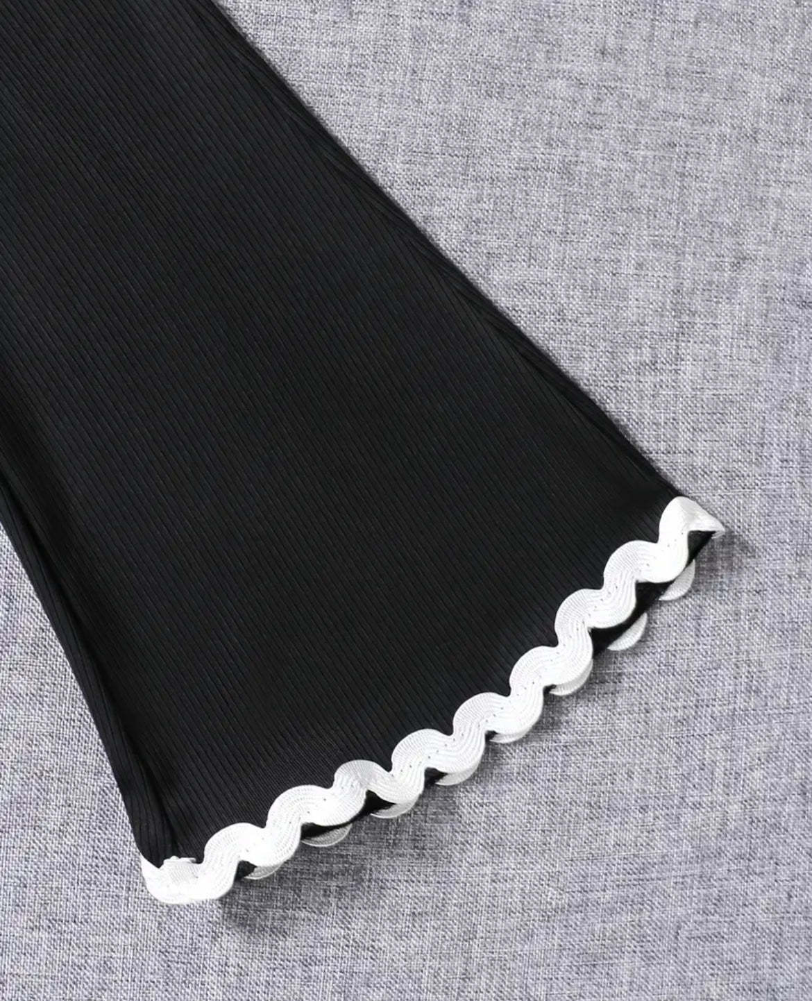 Perfect set for the fashionable young girl. Pieces can be worn together or mix and match with items she already owns. White zig zag trim makes this cute outfit a must have. Ribbed coordinating black pants have elastic waist for good fit. Very nice material.