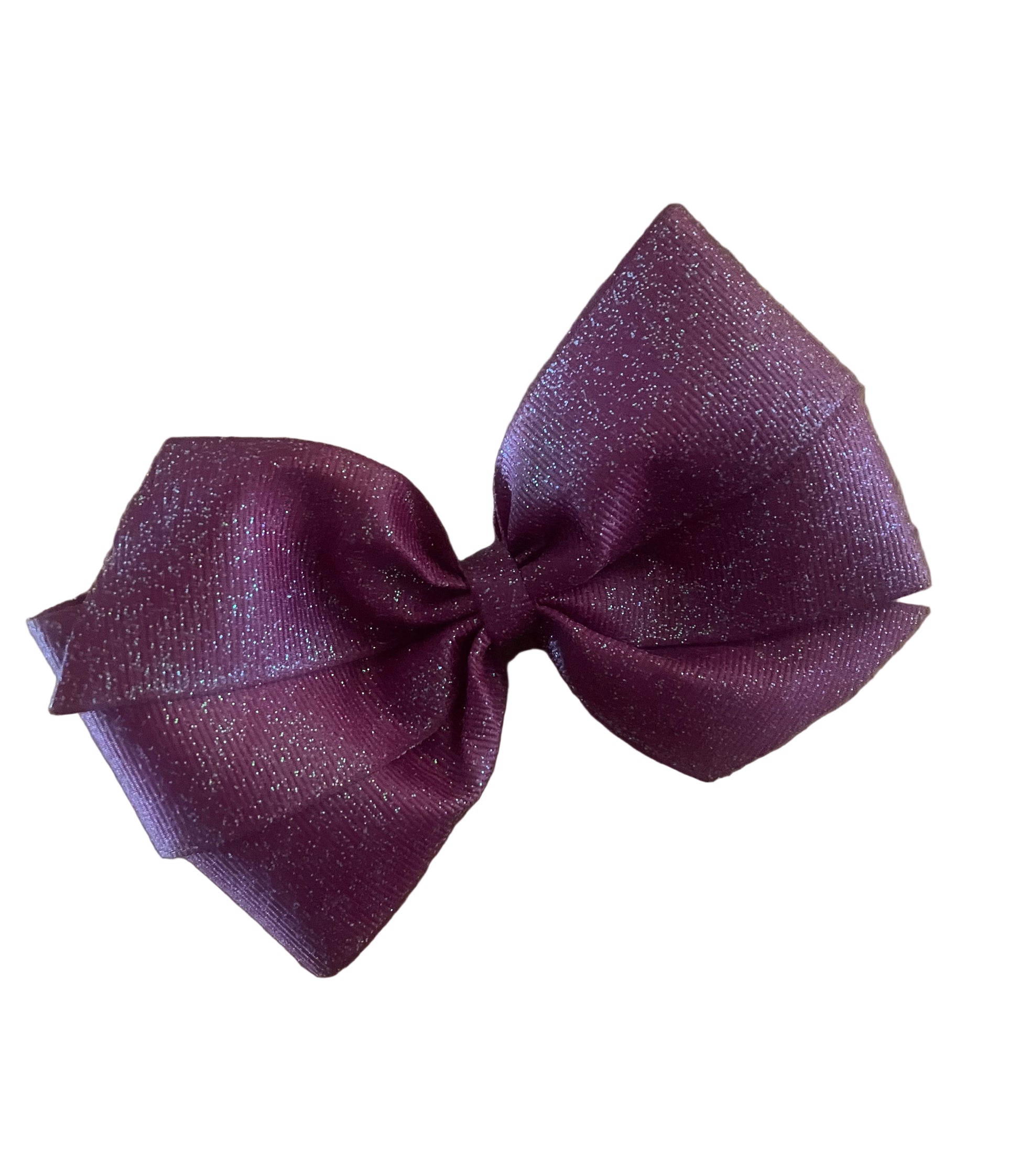 Made with high quality 1.5" grosgrain glitter ribbon and heat sealed to prevent fraying. No slip, latex-free single prong alligator clip keeps in the finest of hair. Measures approx. 4.5" in width. Glitter does not fleck off bow.