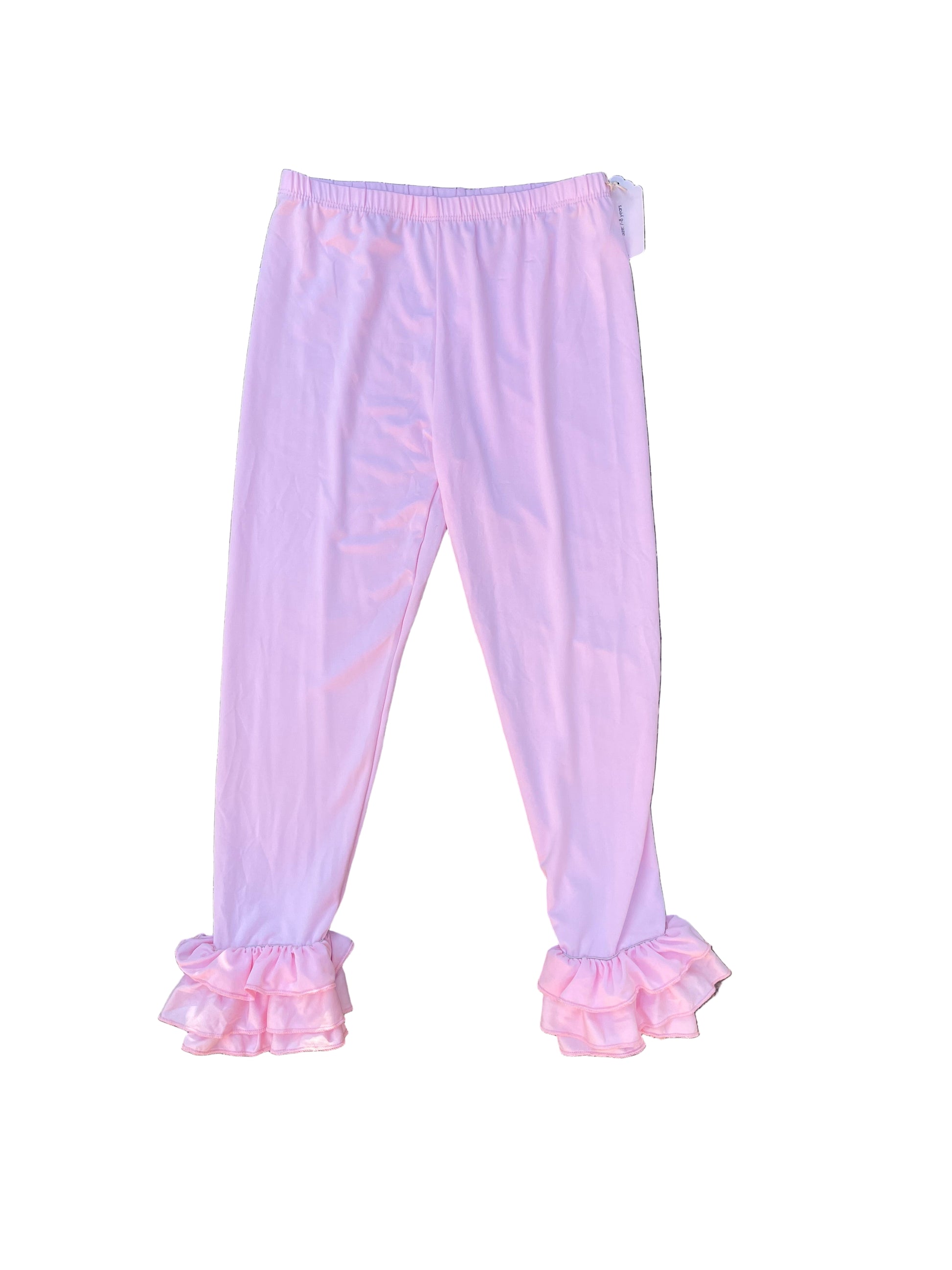 Pink ruffle girl's leggings have stretchy fabric that allows for comfort and easy dressing. Perfect way to dress up any outfit. Coordinates well with several of our tops and dresses. Size: 3T/4T