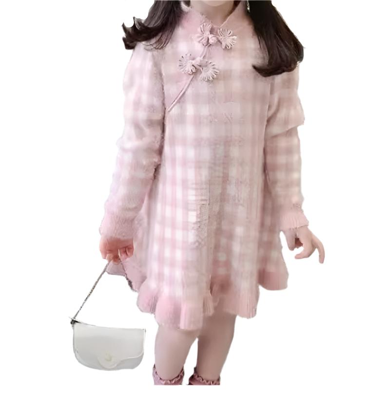 Red & White Ruffle Sweater Tunic, check, girl, Winter, holiday